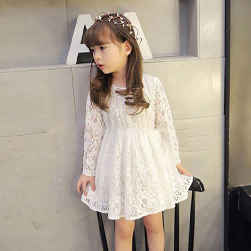 Korean Lace Long Sleeve Round Neck Princess Dress for Girls 80cm to 120cm