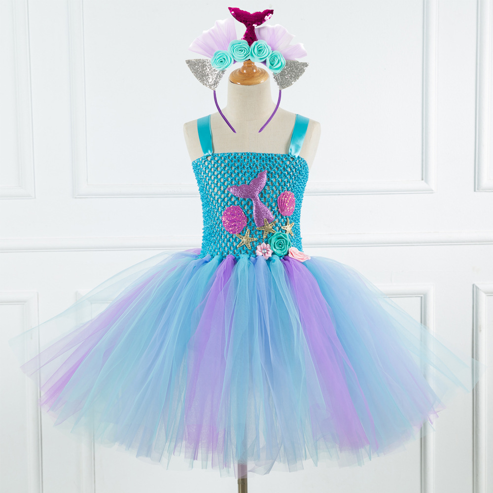 Mermaid Girls Princess Dress with Net Yarn Design for girls aged 3 to 12 years,