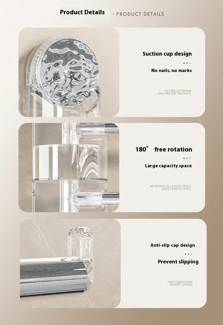 This punch-free rotating towel rack is made from durable stainless steel for long-lasting use. Its multi-rod design allows you to hang multiple towels while saving space, and the rotation feature makes access easy. With a sleek, light luxury style, it’s perfect for adding both function and elegance to your bathroom.