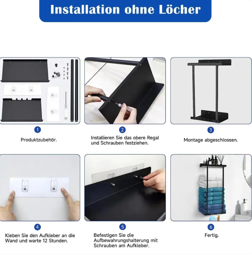 Organize your essentials with this sleek black and grey wall-mounted bathroom storage rack. Crafted with a high-quality finish, it provides durable and stylish storage for toiletries, towels, and accessories. Its minimalist design fits any modern bathroom while saving space and keeping your items within easy reach.
