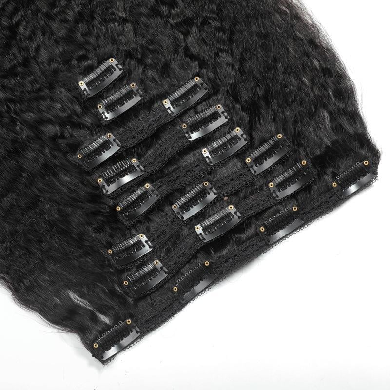 Kinky Straight Clip-In Human Hair Extensions Natural