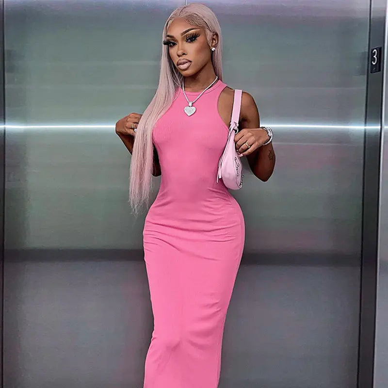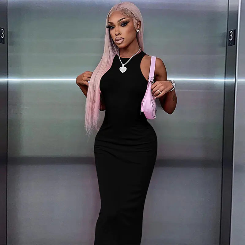 Slim-Fit-Kleid – Mouwloos, Ronde Hals, Effen Kleur – elegant und bequem