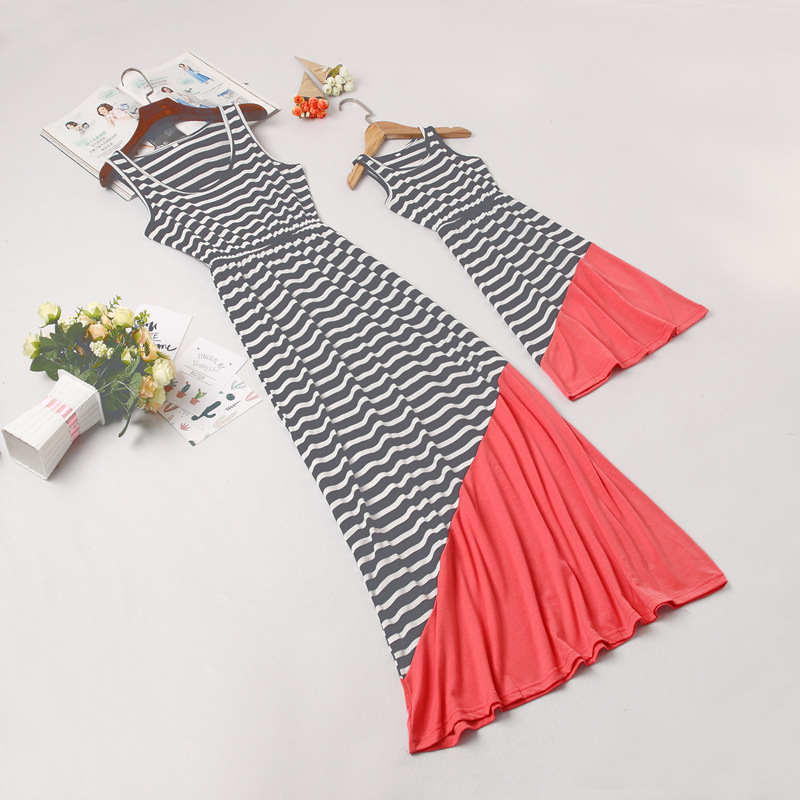 Embrace the joy of twinning with our stunning parent-child dresses, designed to bring a smile to both mothers and daughters! This beautiful striped dress features a stylish patchwork design that is perfect for summer outings, ensuring you and your little one look fabulous together.